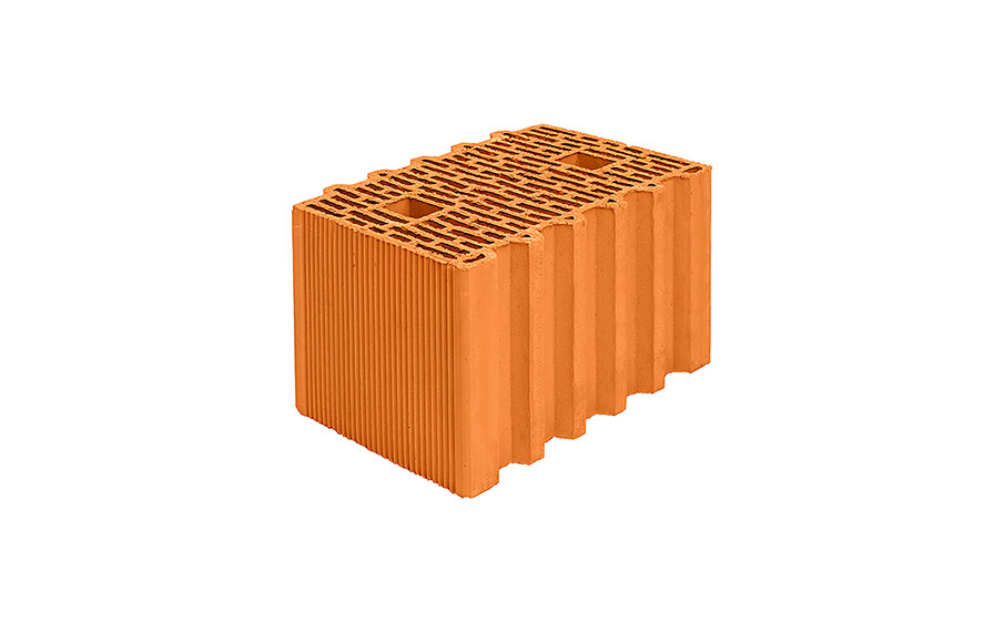Блок керамический поризованный Porotherm 38 используется в строительстве несущих наружных и внутренних однослойных стен, не требующих дополнительной теплоизоляции. Толщина стены составит 380 мм. Блоки соединяются между собой структурой «паз-гребень», при этом вертикальный шов не заполняется кладочным раствором.